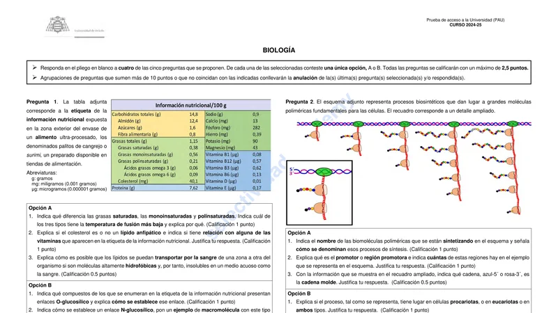 Reservar clase gratis →Examen de Biología selectividad Asturias (Extraordinaria 2025)