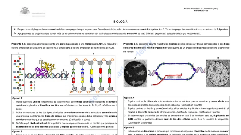 Reservar clase gratis →Examen de Biología selectividad Asturias (Ordinaria 2025)