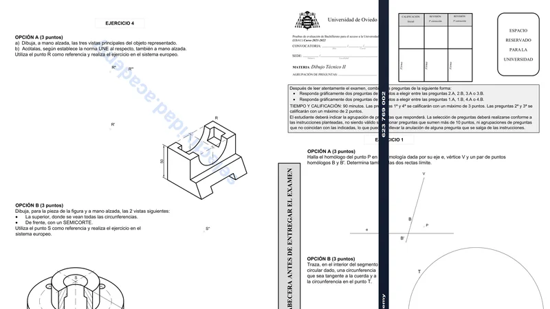 Reservar clase gratis →Examen de Dibujo Técnico II selectividad Asturias (Extraordinaria 2022)