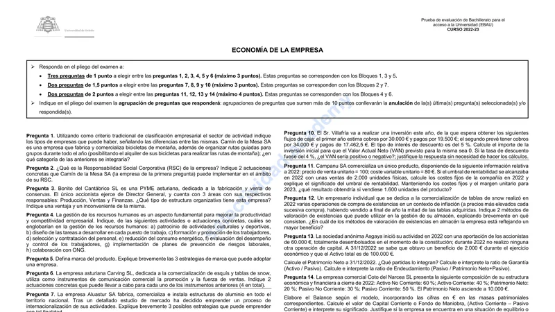 Reservar clase gratis →Examen de Economía de la Empresa selectividad Asturias (Ordinaria 2023)