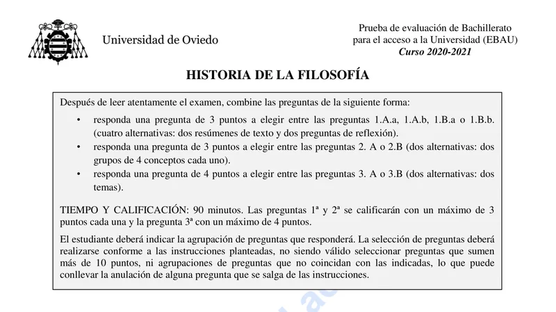 Examen de Historia de la Filosofía selectividad AsturiasExtraordinaria 2021