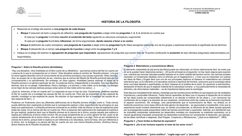 Reservar clase gratis →Examen de Historia de la Filosofía selectividad Asturias (Ordinaria 2023)