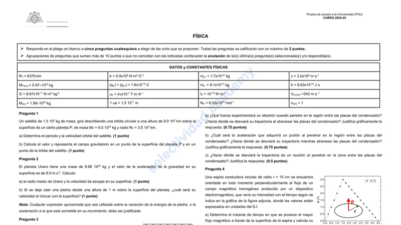 Examen PAU Física selectividad Asturias — Extraordinaria 2025