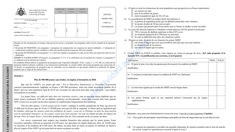 Reservar clase gratis →Examen de Francés selectividad Asturias (Extraordinaria 2020)