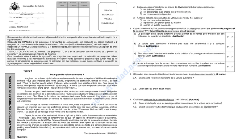 Reservar clase gratis →Examen de Francés selectividad Asturias (Ordinaria 2022)