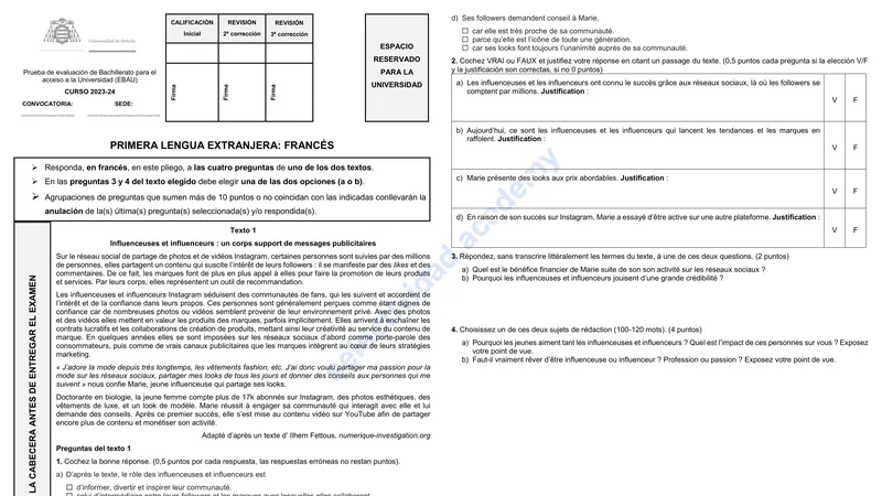 Reservar clase gratis →Examen de Francés selectividad Asturias (Extraordinaria 2024)