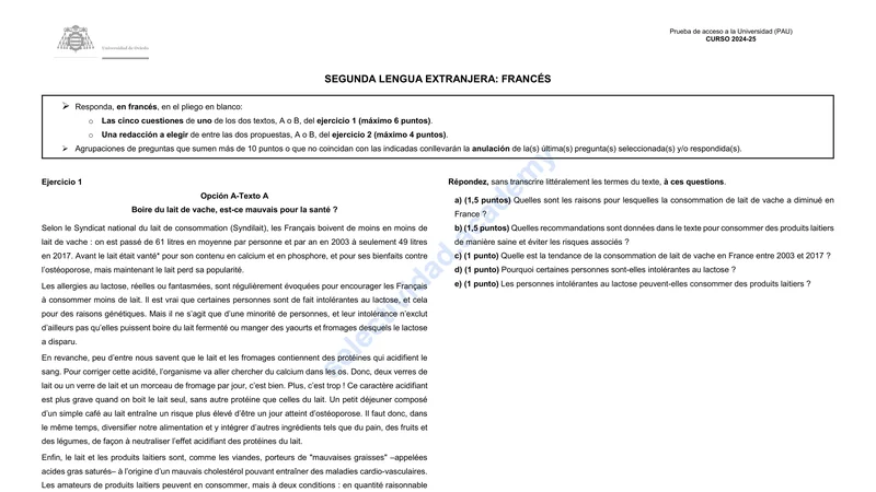 Reservar clase gratis →Examen de Francés selectividad Asturias (Extraordinaria 2025)