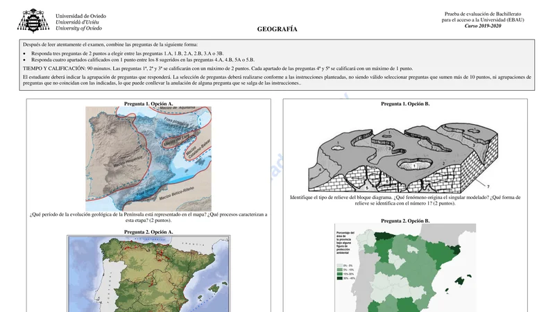 Enunciado oficial del examen de Geografía de la convocatoria extraordinaria de 2020 de la EBAU/PAU de Asturias. PDF de 0.8 MB. Descarga gratuita y sin registro. ¿Preparando la selectividad? Calcula tu nota estimada o consulta la guía completa de selectividad 2026. Encuentra todos los exámenes de Geografía en Asturias o explora las 17 comunidades autónomas.