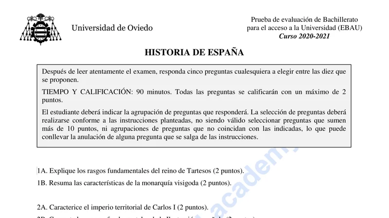 Reservar clase gratis →Examen de Historia de España selectividad Asturias (Extraordinaria 2021)
