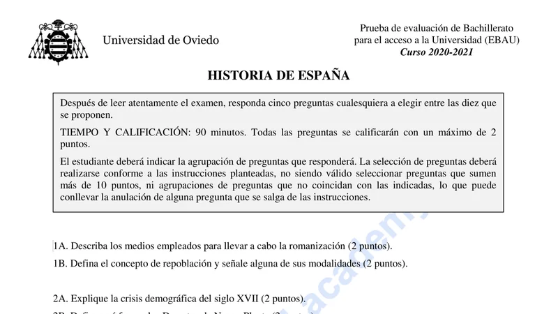 Reservar clase gratis →Examen de Historia de España selectividad Asturias (Ordinaria 2021)