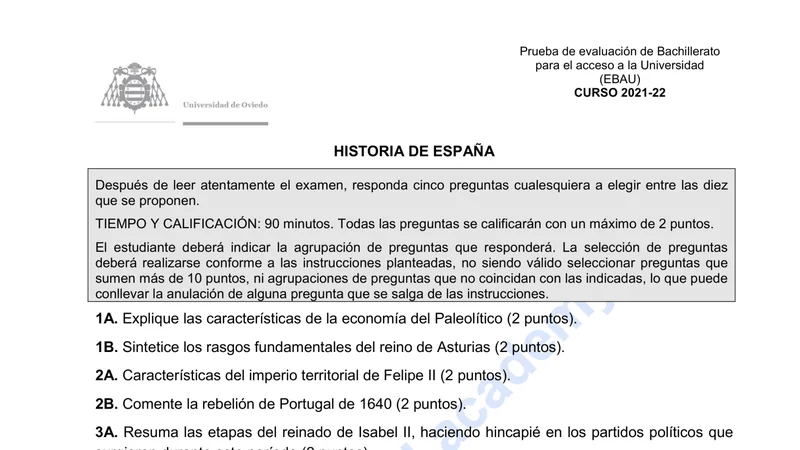 Reservar clase gratis →Examen de Historia de España selectividad Asturias (Extraordinaria 2022)