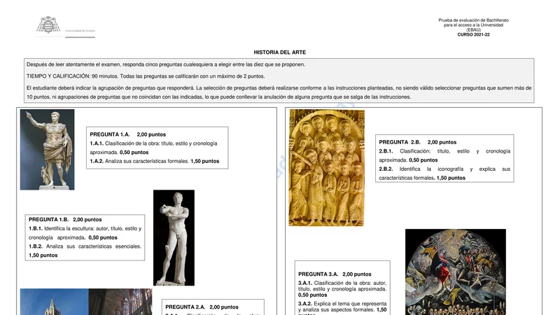 Examen de Historia del Arte selectividad Asturias — Ordinaria 2022