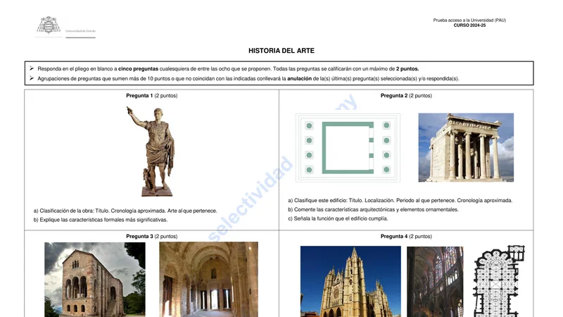 Reservar clase gratis →Examen de Historia del Arte selectividad Asturias (Ordinaria 2025)