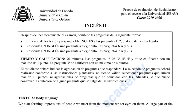 Reservar clase gratis →Examen de Inglés selectividad Asturias (Ordinaria 2020)