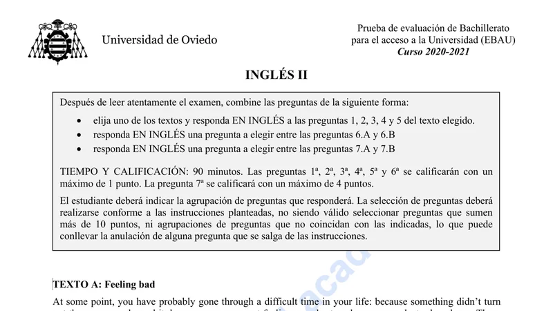 Reservar clase gratis →Examen de Inglés selectividad Asturias (Extraordinaria 2021)