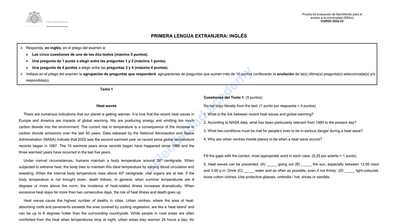 Examen de Inglés selectividad Asturias — Ordinaria 2023