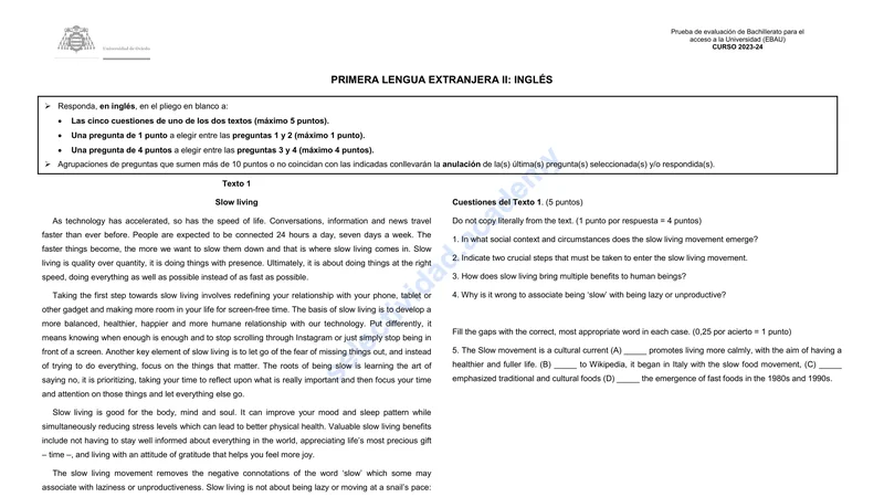 Examen de Inglés selectividad Asturias — Ordinaria 2024