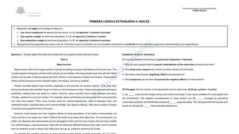 Reservar clase gratis →Examen de Inglés selectividad Asturias (Ordinaria 2025)