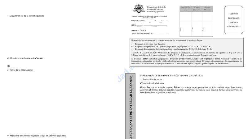 Reservar clase gratis →Examen de Latín II selectividad Asturias (Extraordinaria 2020)