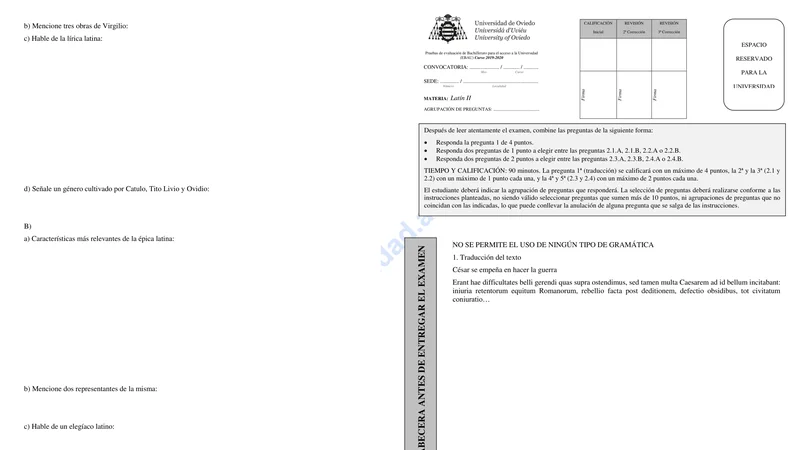 Reservar clase gratis →Examen de Latín II selectividad Asturias (Ordinaria 2020)