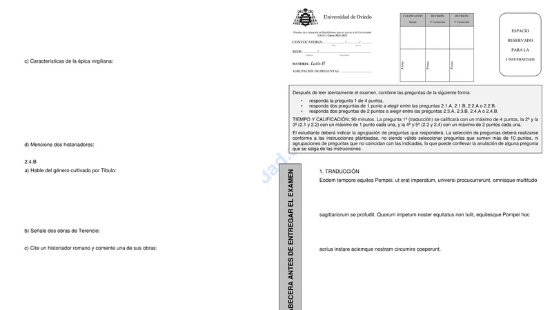 Reservar clase gratis →Examen de Latín II selectividad Asturias (Ordinaria 2022)