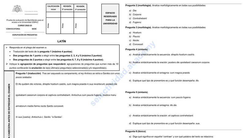 Reservar clase gratis →Examen de Latín II selectividad Asturias (Extraordinaria 2023)