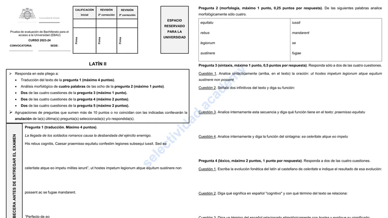 Reservar clase gratis →Examen de Latín II selectividad Asturias (Extraordinaria 2024)