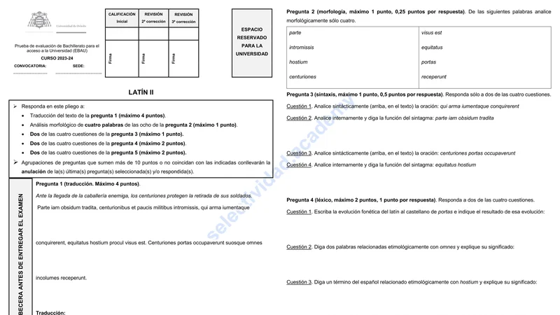 Reservar clase gratis →Examen de Latín II selectividad Asturias (Ordinaria 2024)