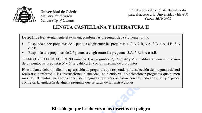 Examen de Lengua Castellana y Literatura selectividad Asturias — Extraordinaria 2020
