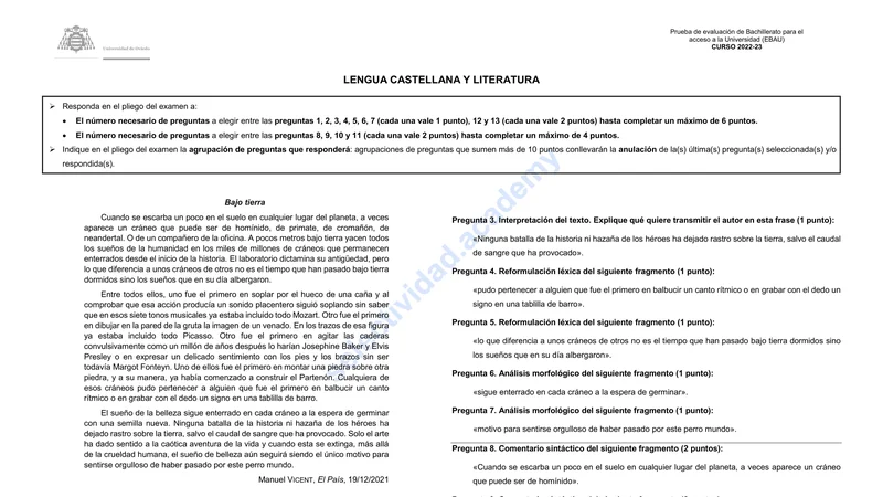 Reservar clase gratis →Examen de Lengua Castellana y Literatura selectividad Asturias (Ordinaria 2023)