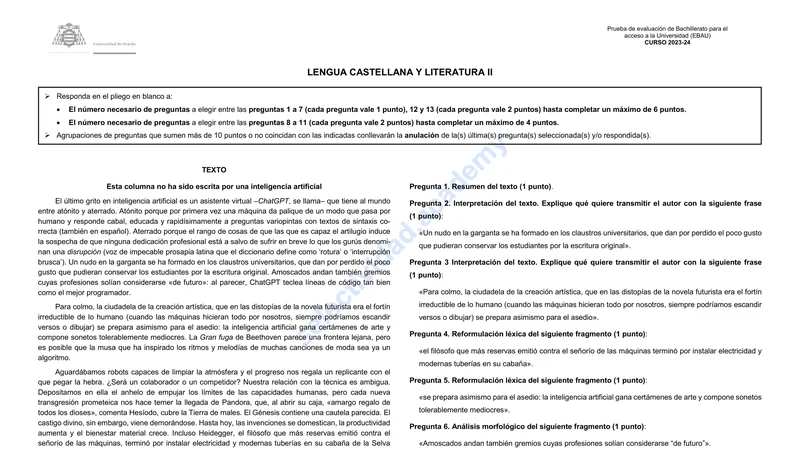 Reservar clase gratis →Examen de Lengua Castellana selectividad Asturias (Extraordinaria 2024)