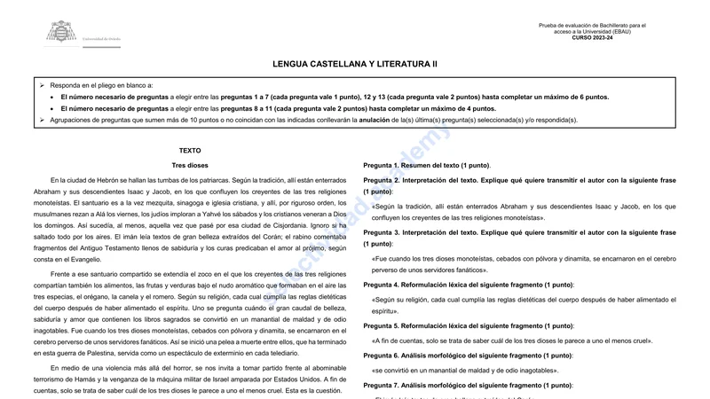 Reservar clase gratis →Examen de Lengua Castellana y Literatura selectividad Asturias (Ordinaria 2024)