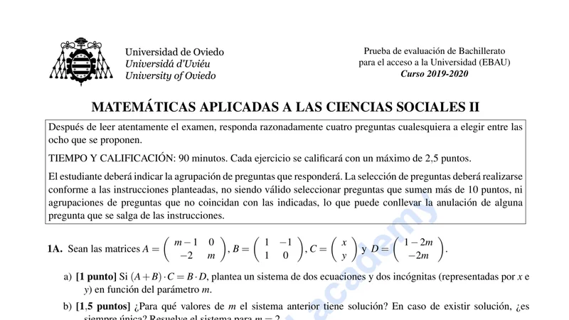 Reservar clase gratis →Examen de Matemáticas Aplicadas CCSS selectividad Asturias (Extraordinaria 2020)