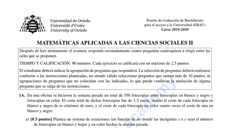 Reservar clase gratis →Examen de Matemáticas Aplicadas CCSS selectividad Asturias (Ordinaria 2020)