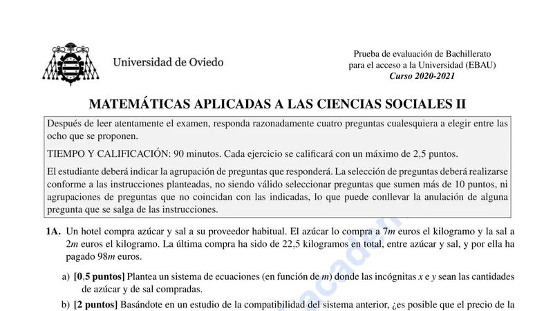 Reservar clase gratis →Examen de Matemáticas Aplicadas CCSS selectividad Asturias (Ordinaria 2021)