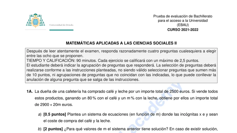 Reservar clase gratis →Examen de Matemáticas Aplicadas CCSS selectividad Asturias (Extraordinaria 2022)