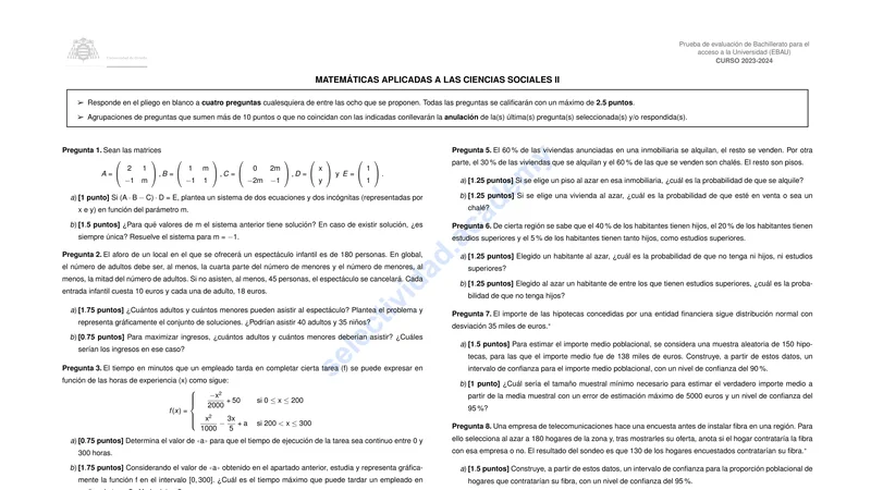 Examen de Matemáticas CCSS selectividad Asturias — Extraordinaria 2024