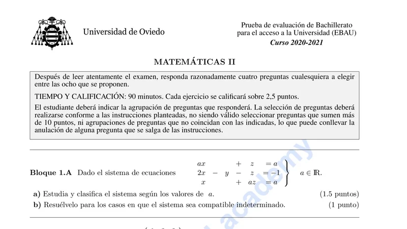 Reservar clase gratis →Examen de Matemáticas II selectividad Asturias (Extraordinaria 2021)