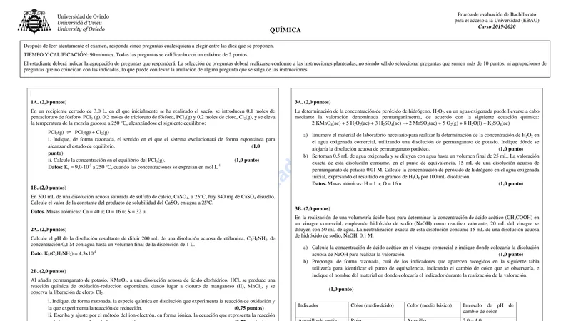 Enunciado oficial del examen de Química de la convocatoria ordinaria de 2020 de la EBAU/PAU de Asturias. PDF de 0.2 MB. Descarga gratuita y sin registro. ¿Preparando la selectividad? Calcula tu nota estimada o consulta la guía completa de selectividad 2026. Encuentra todos los exámenes de Química en Asturias o explora las 17 comunidades autónomas.
