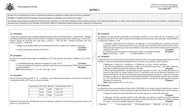 Enunciado oficial del examen de Química de la convocatoria extraordinaria de 2021 de la EBAU/PAU de Asturias. PDF de 0.2 MB. Descarga gratuita y sin registro. ¿Preparando la selectividad? Calcula tu nota estimada o consulta la guía completa de selectividad 2026. Encuentra todos los exámenes de Química en Asturias o explora las 17 comunidades autónomas.