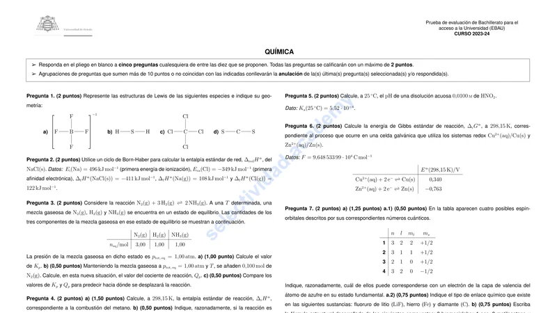 Reservar clase gratis →Examen de Química selectividad Asturias (Ordinaria 2024)