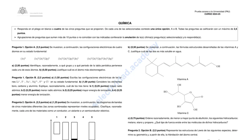 Examen PAU Química selectividad Asturias — Extraordinaria 2025