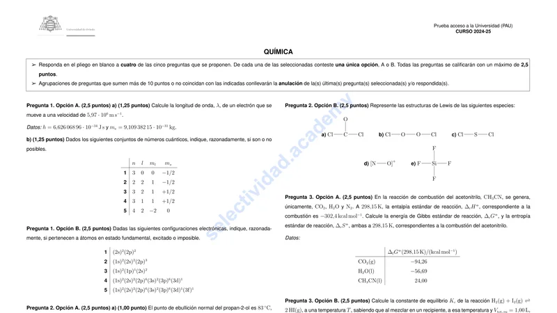Examen PAU Química selectividad Asturias — Ordinaria 2025