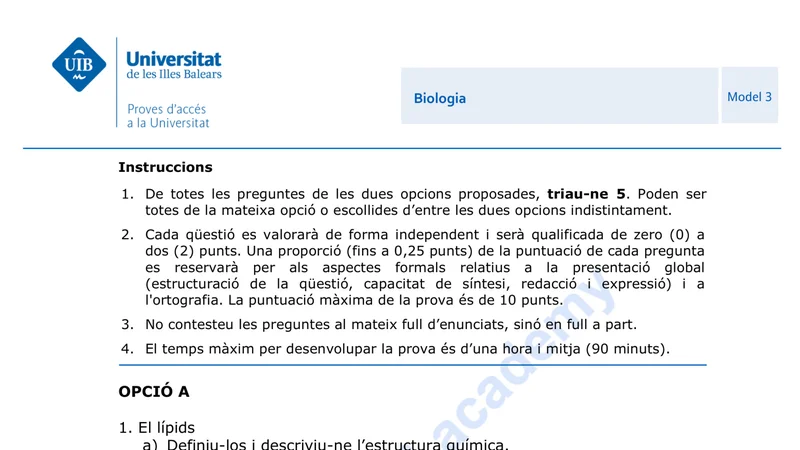 Examen de Biología selectividad Islas Baleares — Ordinaria 2021