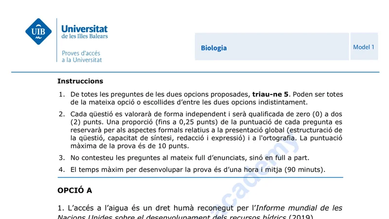 Examen de Biología selectividad Islas Baleares — Ordinaria 2023