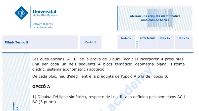 Más exámenes de Dibujo Técnico II en Islas Baleares