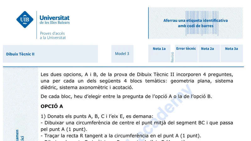 Reservar clase gratis →Examen de Dibujo Técnico II selectividad Islas Baleares (Ordinaria 2021)