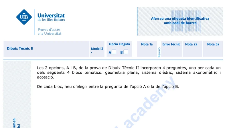 Reservar clase gratis →Examen de Dibujo Técnico II selectividad Islas Baleares (Ordinaria 2024)