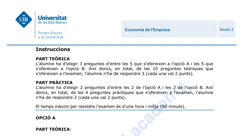 Más exámenes de Economía de la Empresa en Islas Baleares