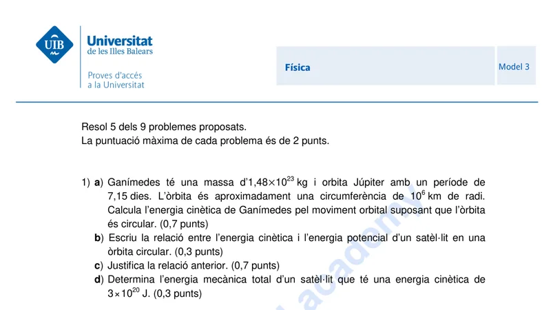 Examen de Física selectividad Islas Baleares — Extraordinaria 2020